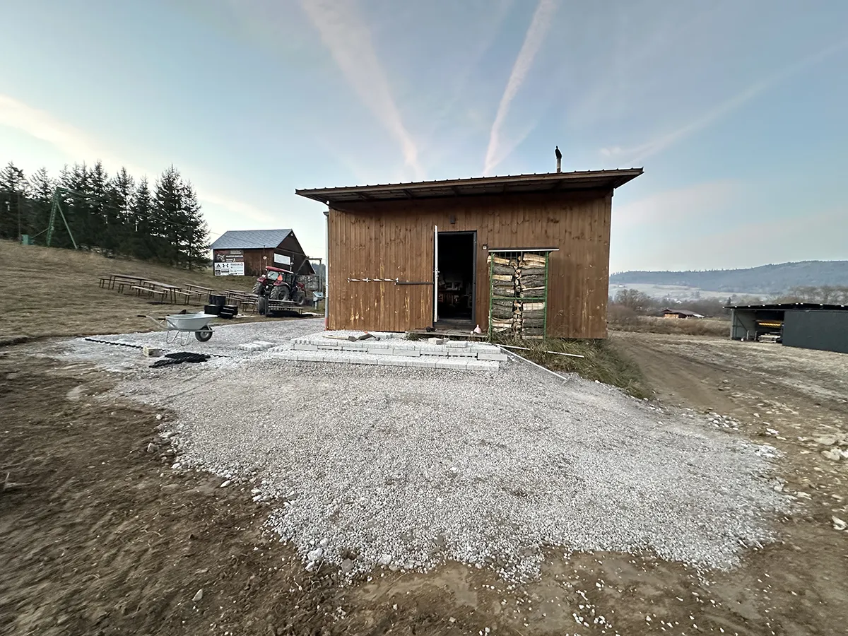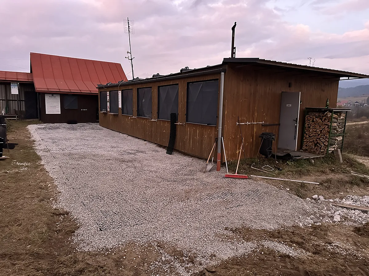 Po skúsenostiach z minulých sezón s neustále menšou vrstvou snehu mimo zjazdoviek, sme na sezónu 2024/25 zrealizovali terénne úpravy v okolí bufetu, pokladne, WC a požičovne pokládkou zatrávňovacej dlažby so štrkovou výplňou tak, aby bol pohyb v týchto priestoroch komfortnejší a tiež bezpečnejší.